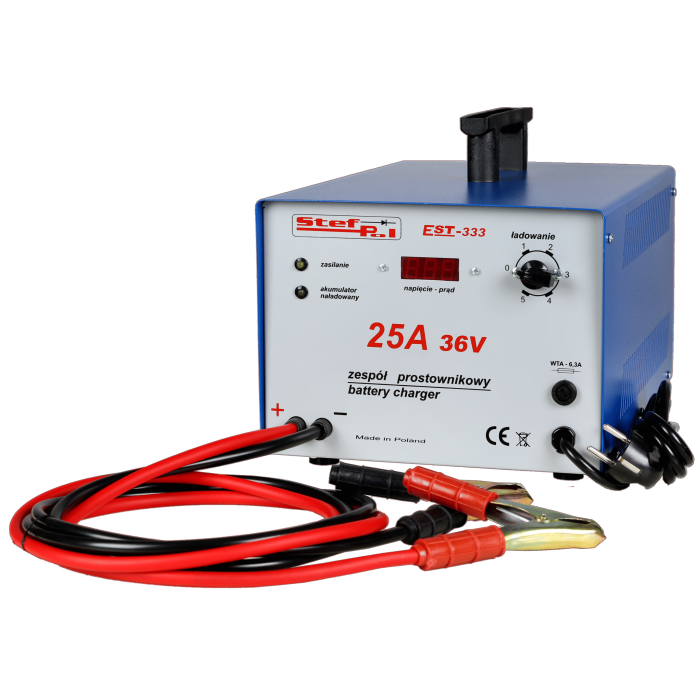 Zespół Prostownikowy EST – 333 przeznaczony jest do samoczynnego ładowania akumulatorów ołowiowo-kwasowych o napięciu 36V i pojemności 70 ÷ 250Ah.