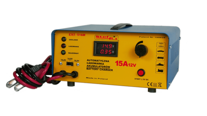 Ładowarki EST – 516 przeznaczone są do samoczynnego ładowania akumulatorów bezobsługowych, żelowych i ołowiowo – kwasowych o napięciu 12V i pojemności 34 ÷ 150Ah. przeznaczone są do samoczynnego ładowania akumulatorów bezobsługowych, żelowych i ołowiowo – kwasowych o napięciu 12V i pojemności 34 ÷ 150Ah.Ładowanie akumulatorów tymi ładowarkami gwarantuje pełne naładowanie akumulatora jak i przedłużenie jego żywotności. Ładowarki EST od innych ładowarek wyróżnia to, że po osiągnięciu właściwego napięcia przez akumulator układ nie rozłącza ładowarki, od tego momentu na akumulatorze podtrzymywana jest stała wartość napięcia, jest to korzystne dla akumulatora.