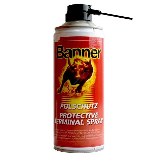 Chroni bieguny akumulatora, klemy, uchwyt na akumulator i połączenia wtykowe przed korozją, utlenianiem i wpływami atmosferycznymi. Zapobiega spadkom napięcia i zmniejsza rezystancję złączy. Pojemność : 400 ml Producent : Banner