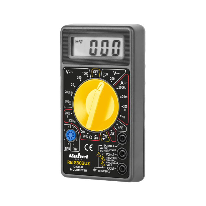 Miernik uniwersalny REBEL RB-830BUZ to niezawodne narzędzie pomiarowe, idealne zarówno dla profesjonalistów, jak i amatorów. Dzięki szerokiemu zakresowi funkcji zapewnia precyzyjne i wszechstronne pomiary, niezbędne przy różnych pracach elektrycznych i elektronicznych.